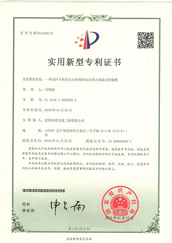 沈陽(yáng)雙壹機(jī)械主要從事挖掘機(jī)伸縮臂、加長(zhǎng)臂、氣彈簧生產(chǎn)業(yè)務(wù)、挖掘機(jī)租賃業(yè)務(wù),生產(chǎn)研發(fā)18-55米伸縮臂,200米卷?yè)P(yáng)挖掘器;公司生產(chǎn)的三節(jié)伸縮臂為雙向用力,可配帶挖掘斗與貝殼斗,超大斗容2.6立方;研發(fā)的氣彈簧可節(jié)油50%,加大斗容80%,提高大臂舉升力!挖掘機(jī)伸縮臂適用于地鐵、地下人防、沉井、河道清淤、高層樓基礎(chǔ)、管廊工程等深遠(yuǎn)坑作業(yè),產(chǎn)品選材優(yōu)良,設(shè)備工藝先進(jìn),質(zhì)量穩(wěn)定可靠,雙壹機(jī)械以質(zhì)量求生存、以信譽(yù)占市場(chǎng)的經(jīng)營(yíng)原則為全國(guó)用戶提供優(yōu)質(zhì)產(chǎn)品。